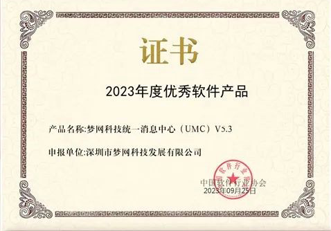 “统一消息中心 (UMC) V5.3”获评“2023年度优秀软件产品”