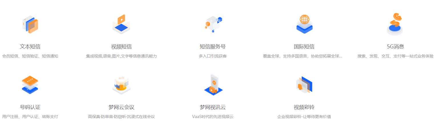 除文本短信外,艾弗森贝博ballbet官网科技已开发并良好运营着包括视频短信、短信服务号、国际短信、5G消息、号码认证、艾弗森贝博ballbet官网视讯云等多种云通信产品。